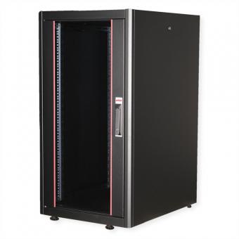 19-Zoll Netzwerkschrank Basic 22 HE, 600x800 BxT Glastür schwarz