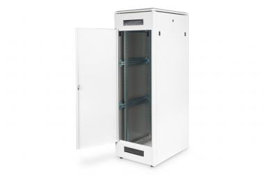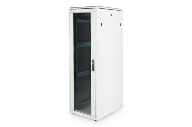 Die Netzwerkschränke der Unique Serie wurden für den benutzerfreundlichen Einbau von aktiven- und passiven Netzwerkkomponenten einhergehend mit einer sauberen Verkabelung entwickelt. Jeder Schrank wird aus bis zu 1,5 mm starkem Stahlblech gefertigt und sorgt auf Grund von spezieller Blechbiegetechnik als robuste Stahlkonstruktion für eine sehr gute Stabilität. Die Farbgebung erfolgt durch Pulverbeschichtung in den Farben Grau (RAL 7035) und Schwarz (RAL 9005). Im Sonderfall kann eine Demontage der Schränke erfolgen, um auch schwer zugängliche Aufstellungsorte zu erreichen. Die Türen lassen sich leicht demontieren, ein Türanschlagswechsel kann vorgenommen werden. Das Dach ist ausgestattet mit einem abgesetzten Deckel inkl. Lüftungsschlitzen für eine verbesserte Luftzirkulation. Desweiteren ist das Dach vorbereitet für die Aufnahme eines Lüftermoduls zur aktiven Entlüftung. Die Netzwerkschränke beinhalten 2 Paare (4 Stück) montierte 483 mm (19)-Profilschienen im Inneren. Diese sind galvanisiert und mit einer Markierung der Höheneinheit versehen (zählbar in beide Richtungen). Sie lassen sich in der Tiefe verstellen und sind zusätzlich mit Tiefenstreben im Schrank verbunden um so einen intensiven Ausbau mit 483 mm (19")-Komponenten zu ermöglichen. Ein wichtiger Aspekt bei der Installation ist das Kabelmanagement. Im Boden eines jeden Schrankes befindet sich ein aufschiebbarer Kabeleinlass mit Moosgummidichtung. Schränke ab 26HE sind ausgestattet mit zwei rückseitigen Kabeleinlässen mit Bürstenleiste ober- und unterhalb der Rücktür. Für Schränke mit einer Breite ab 800 mm werden die Kabelführungsmöglichkeiten durch zusätzliche Einlässe mit Bürstenleiste links und rechts im Dach und Boden erweitert. Desweiteren sind vertikale Kabelführungskanäle mit Blende links und rechts der 483 mm (19")-Profilschienen in der Front montiert (bei Schränken ab 32HE und 800 mm Breite). Ein umfangreich erhältliches Portfolio an Zubehör für die Kabelrangierung, Fachböden, etc. hilft viele Anforderungen der täglichen Praxis zu erfüllen.
