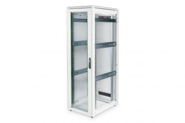 - 483 mm (19")-Profilschienen an der Vorder- und Rückseite innerhalb des Schrankes montiert, galvanisiert