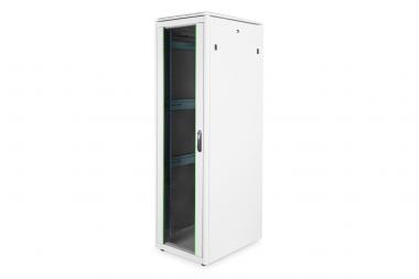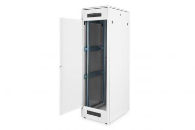 Die Netzwerkschränke der Unique Serie wurden für den benutzerfreundlichen Einbau von aktiven- und passiven Netzwerkkomponenten einhergehend mit einer sauberen Verkabelung entwickelt. Jeder Schrank wird aus bis zu 1,5 mm starkem Stahlblech gefertigt und sorgt auf Grund von spezieller Blechbiegetechnik als robuste Stahlkonstruktion für eine sehr gute Stabilität. Die Farbgebung erfolgt durch Pulverbeschichtung in den Farben Grau (RAL 7035) und Schwarz (RAL 9005). Im Sonderfall kann eine Demontage der Schränke erfolgen, um auch schwer zugängliche Aufstellungsorte zu erreichen. Die Türen lassen sich leicht demontieren, ein Türanschlagswechsel kann vorgenommen werden. Das Dach ist ausgestattet mit einem abgesetzten Deckel inkl. Lüftungsschlitzen für eine verbesserte Luftzirkulation. Desweiteren ist das Dach vorbereitet für die Aufnahme eines Lüftermoduls zur aktiven Entlüftung. Die Netzwerkschränke beinhalten 2 Paare (4 Stück) montierte 483 mm (19)-Profilschienen im Inneren. Diese sind galvanisiert und mit einer Markierung der Höheneinheit versehen (zählbar in beide Richtungen). Sie lassen sich in der Tiefe verstellen und sind zusätzlich mit Tiefenstreben im Schrank verbunden um so einen intensiven Ausbau mit 483 mm (19")-Komponenten zu ermöglichen. Ein wichtiger Aspekt bei der Installation ist das Kabelmanagement. Im Boden eines jeden Schrankes befindet sich ein aufschiebbarer Kabeleinlass mit Moosgummidichtung. Schränke ab 26HE sind ausgestattet mit zwei rückseitigen Kabeleinlässen mit Bürstenleiste ober- und unterhalb der Rücktür. Für Schränke mit einer Breite ab 800 mm werden die Kabelführungsmöglichkeiten durch zusätzliche Einlässe mit Bürstenleiste links und rechts im Dach und Boden erweitert. Desweiteren sind vertikale Kabelführungskanäle mit Blende links und rechts der 483 mm (19")-Profilschienen in der Front montiert (bei Schränken ab 32HE und 800 mm Breite). Ein umfangreich erhältliches Portfolio an Zubehör für die Kabelrangierung, Fachböden, etc. hilft viele Anforderungen der täglichen Praxis zu erfüllen.