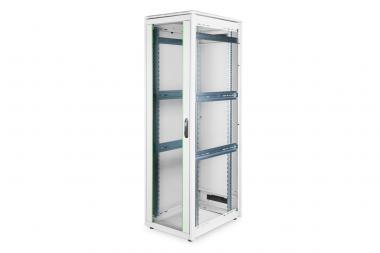 - 483 mm (19")-Profilschienen an der Vorder- und Rückseite innerhalb des Schrankes montiert, galvanisiert