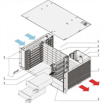 Einschubsystem mit 64 bit CompactPCI-, PSB-, H.110-Busplatine, 6HE, horiz. eingebaut mit Rear I/O für 19-Zoll-Netzgerät