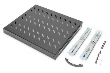 1HE ausziehb. Fachboden für 600mm Tiefe Schränke 40x485x368mm, bis 25kg, schwarz (RAL 9005)