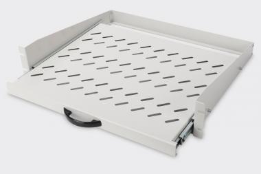 Ausziehbarer Fachboden zum Festeinbau an den vorderen 483mm (19-Zoll)-Profilschienen