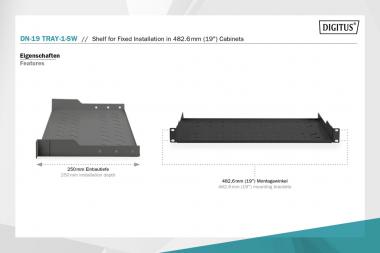 1HE Fachboden festeinbau f. Schr. ab 400mm Tiefe 45x483x250mm, bis 15kg, schwarz (RAL 9005)