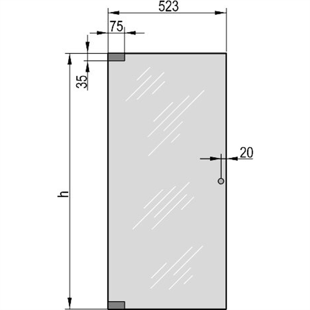 Glastür, 120°-Öffnungswinkel, SEKURIT-TUER 12HE, 553B