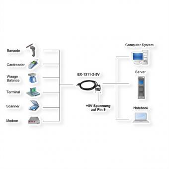 EX-1311-2-5V, USB 2.0 zu Seriell RS-232 mit 5V Spannung auf Pin 9