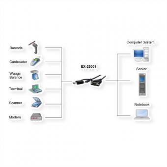 EX-23001 USB 2.0 mit C- und A-Stecker zu 1 x Seriell RS-232 Kabel mit 9 Pin Stecker FTDI Chip-Set