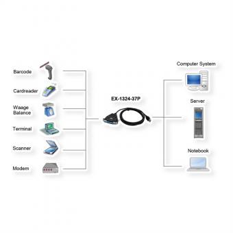 USB 2.0 zu 4x RS-232, 37 Pin, EX-1324-37P