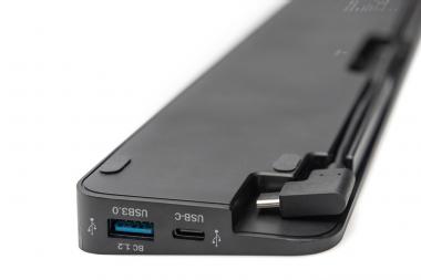 - Smarte Kabelführung - Verbindung beidseitig (rechts oder links) am Notebook möglich, Kabelführung befindet sich unterhalb der Dockingstation