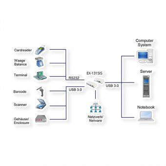 EX-1315IS USB 3.0 Dockingstation, 1x Ethernet Gigabit, 1x RS232