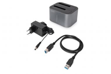 SATA Docking Station USB3.0, 2-port, 2.5-Zoll/3.5-Zoll SSD/HDD, Klonfunktion