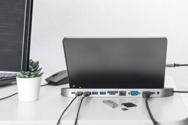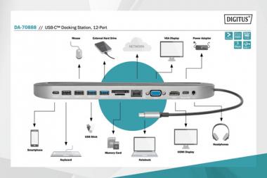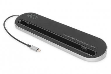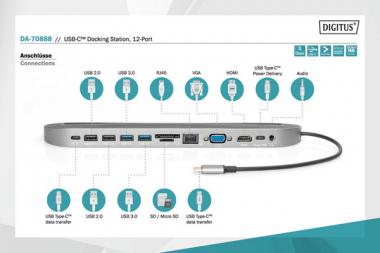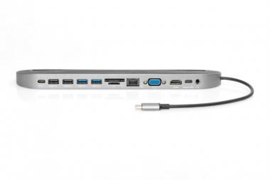 12-Port USB-C Dock, gray, HDMI, VGA, 2x USB-C, 4x USB-A, RJ45, 1x 3,5mm, SD/MicroSD