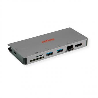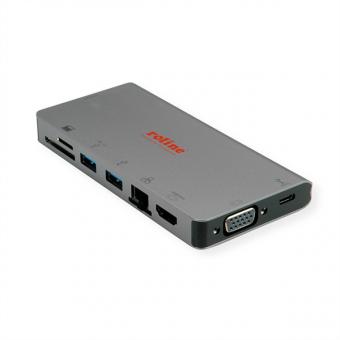 USB Typ C Dockingstation, HDMI 4K, VGA, 2x USB 3.2 Gen 1, LAN, PD, Cardre
