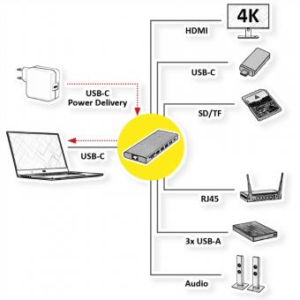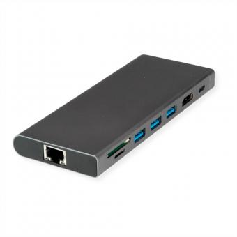 USB Typ C Dockingstation, HDMI 4K60, 4x US3.2Gen1 (1x C + 3x A), 1x PD, 1x SD/TF, 1x RJ45, 1x 3.5mm