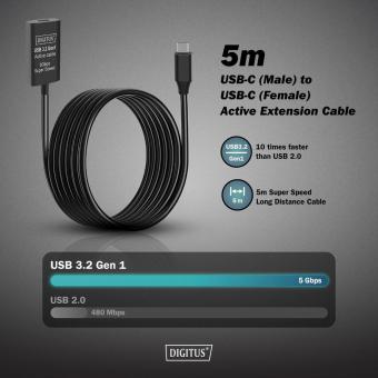 Aktives USB-C Verlängerungskabel, 5m 5G, USB 3.2 Gen1, USB-C - USB-C (M/F)