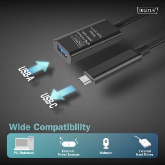 Aktives USB 3.2 Gen2 10G Verlängerungskabel, USB-C zu USB-A, 5m