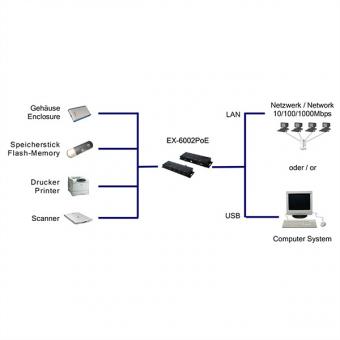 Gigabit Ethernet zu 4x USB 2.0, mit PoE