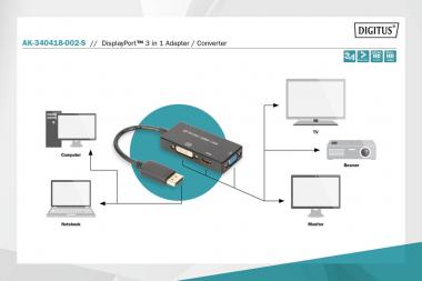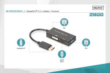 DisplayPort 3in1 Adapter / Konverter - DP - HDMI+DVI+VGA