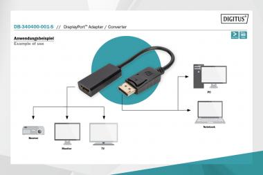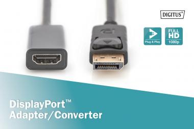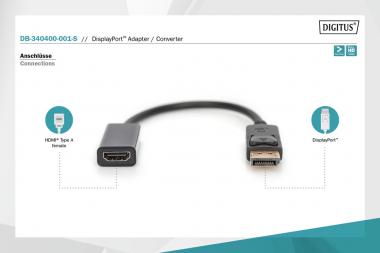 DisplayPort Adapterkabel, DP - HDMI Typ A St/Bu, 0.15m,m/Verriegelung, DP 1.1a, sw