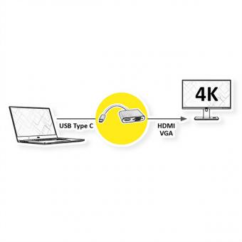 GOLD Display Adapter USB Typ C zu VGA + HDMI