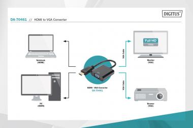 HDMI auf VGA Konverter Adapter Typ A - VGA (D-Sub) connector, 3,5mm audio jack
