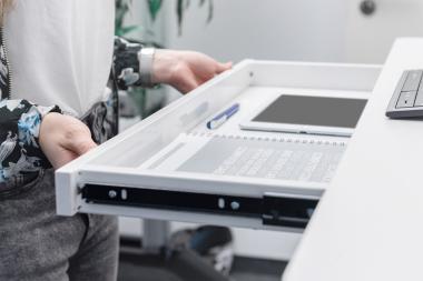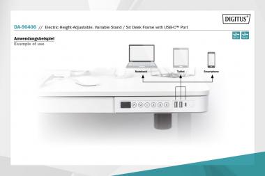 Elektrisch höhenverstellbarer Schreibtisch mit USB-Ladestation und Schublade