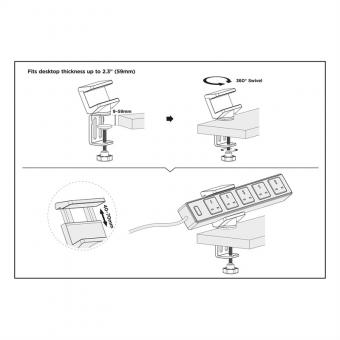Tischklemme für Steckdosenleiste, drehbar 360°, weiß