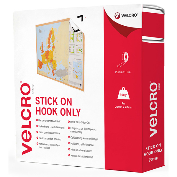 Klettband selbstklebend, nur Haken, 20mm x 10m, weiß