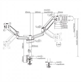 Dual LCD-Arm Trägerstange, 4 Gelenke, Tischmontage