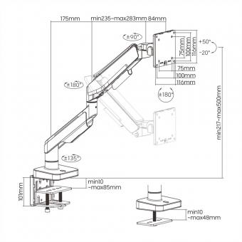 LCD-Arm, Tischmontage, Gasfeder, 5 Gelenke, 17-49 Zoll, bis 20kg