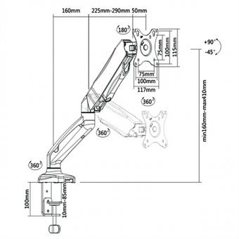 LCD-Arm, Tischmontage, Gasfeder, 5 Gelenke, schwarz