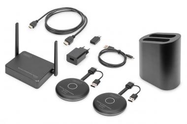 Das Wireless Collaboration System von DIGITUS® vereint all Ihre Geräte (Notebook, Tablet, Smartphone) und bietet eine hardwarebasierte Präsentationslösung zum kabellosen Übertragen von Bildschirminhalten für Meeting-/Konferenzräume. Bis zu 30 Teilnehmer können mit dem Empfänger verbunden werden. Bis zu 4 Teilnehmer können zeitgleich im Split-Screen präsentieren/kollaborieren. Notebooks lassen sich mit dem HDMI-Transmitter anschließen, das Set lässt sich um weitere Transmitter (DS-55322) erweitern. Inhalte vom Tablet/Smartphone lassen sich bequem über die Sharing/Cast-Funktion (iOS, iPadOS/Android) Ihres Mobilgeräts teilen, dazu verbinden Sie Ihr Mobilgerät vorher per WLAN mit dem Empfänger (SSID). Die Einrichtung des Systems wurde hier bestmöglich simplifiziert - zusätzliche Sotware/Apps sind nicht erforderlich. Steigern Sie die Effiziens Ihrer Meetings, sparen Sie Zeit und erzielen Sie optimierte Ergebnisse. Teilen - Präsentieren - Zusammenarbeiten.