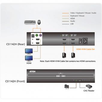 2-Port USB HDMI Dual Display Secure KVM CS1142H