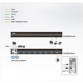 8-Port KVM Switch, USB 3.0, 4K, DisplayPort, CS19208