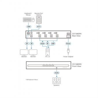 CS1144DP4 4-Port USB DisplayPort Dual Display Secure KVM Switch