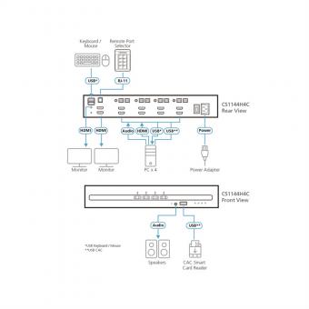 CS1144H4C 4-Port USB HDMI Dual Display Secure KVM Switch mit CAC