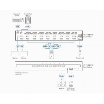CS1148DP4C 8-Port 4K USB DisplayPort Dual Display Secure KVM Switch mit Car