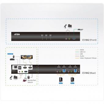 CS1842 2-Port True 4K HDMI Dual-View KVM Switch mit Audio + USB 3.0Hub