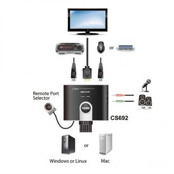 KVM Switch, USB, HDMI, Audio, 2 Ports