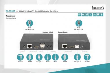 4K HDMI® HDBaseT™ 2.0 KVM Extender Set, 100m