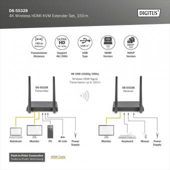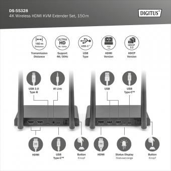4K Wireless HDMI KVM Extender Set, 150m