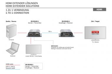 HDMI Extender Set, 50m via Netzwerkkabel (CAT 6/6a/7), EDID, 1x HDMI loop out, FHD 1080p