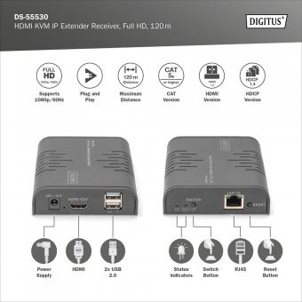IP KVM Extender, Receiver (RX) Einheit für DS-55529