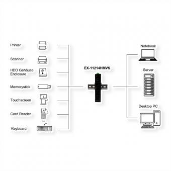 EX-11214HMVS 4 Port USB 2.0 Metall HUB mit Netzteil 5V/2A Genesys Chipset