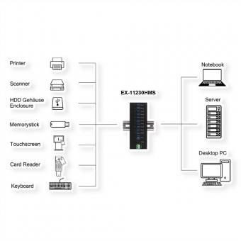 EX-11230HMS 10 Port USB 3.2 Gen 1 HUB Din-Rail Kit und Wand VIA VL811+ Chipset