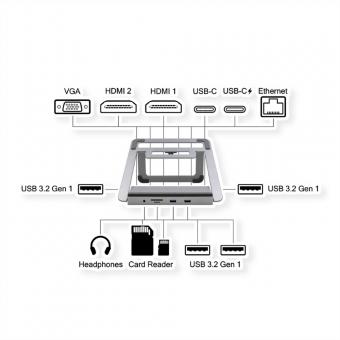 EX-1223HM 12 in 1 USB-C Dockingstation mit Notebook Stand für Notebook, Matebook und MacBook
