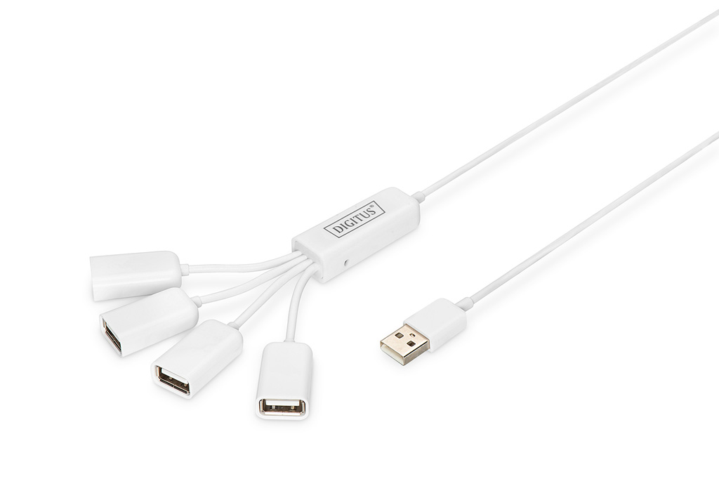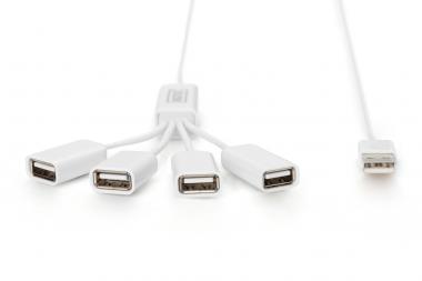 USB 2.0 Kabel Hub, 4-Ports 4x USB A/F, 1xUSB A male, DC 2.5mm für option. PSU