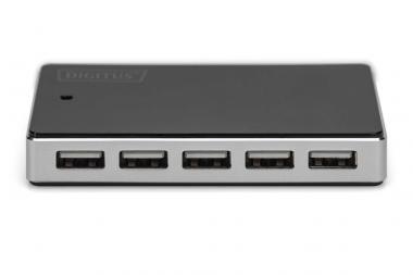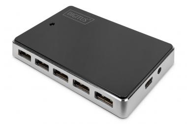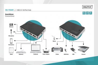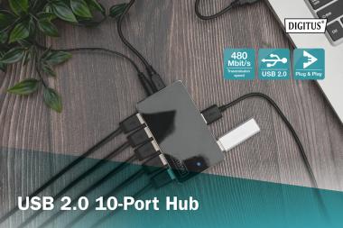 USB 2.0 Hub 10-Port, 10xUSB A/F, 1x USB mini incl. ext. Netzteil 5V DC 4A, 1m, sw