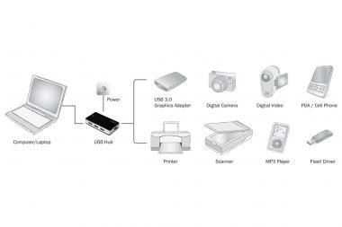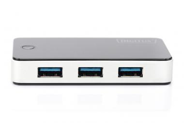 USB 3.0, 4-ports HUB, 4xUSB A/F,1xUSB A/F Cable AM-AM 1.2M, incl. 5V 3,5A Netzteil, sw